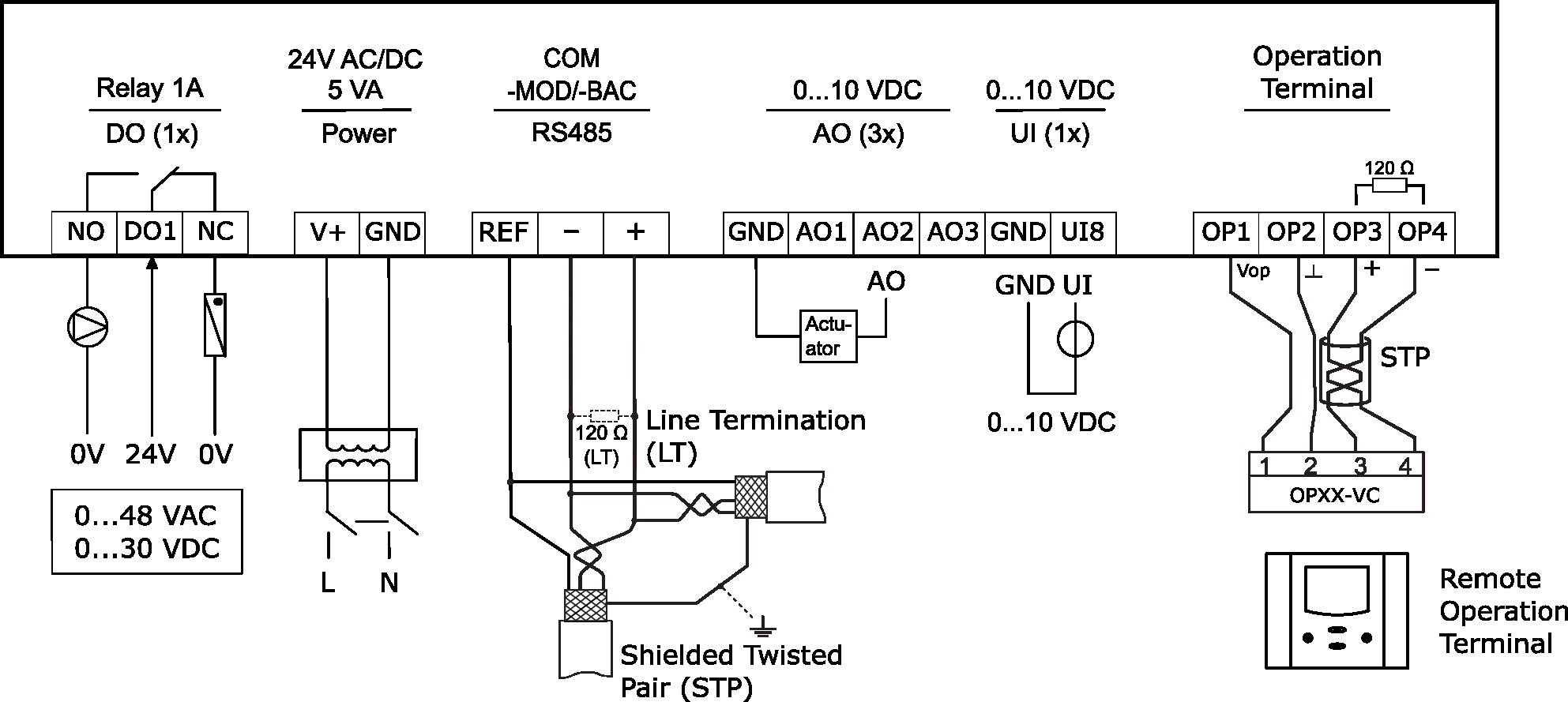 Communication supports BACnet or Modbus. There is also a Wi-Fi communication option available which supports Modbus TCP and BACnet/IP. An embedded webserver provides a web interface to access the controller in order to change the connection settings and to operate the controller.