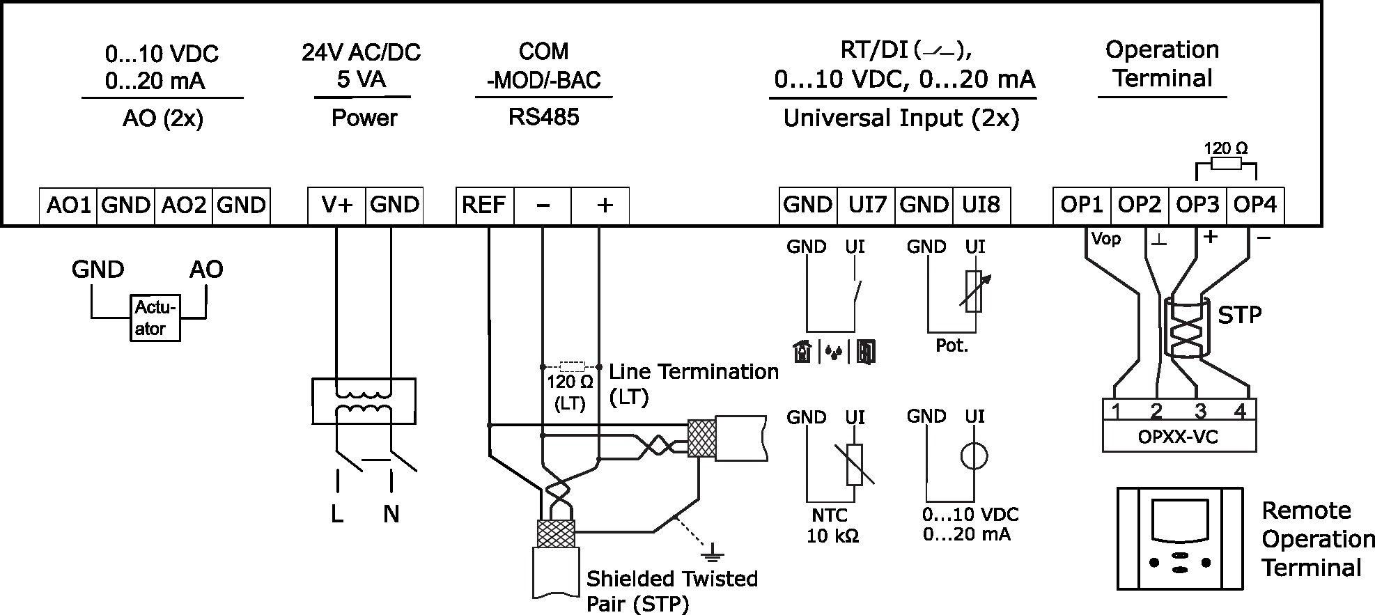 2 Universaleingänge (NTC, VDC, mA)